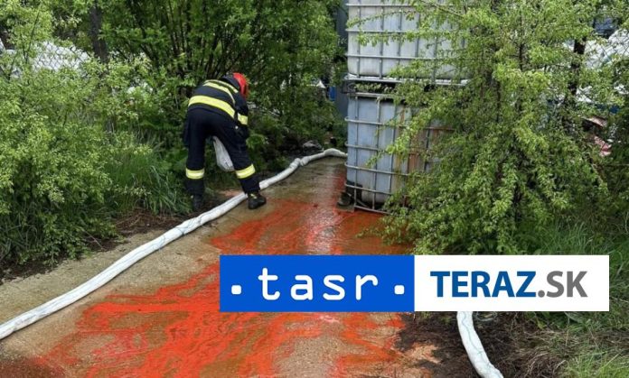 Únik nebezpe?nej látky v priestoroch družstva hasi?om z obce nahlásil ob?an krátko pred 10.00 h. Hasi?i pri prvotnom prieskume zistili, že z neozna?eného IBC kontajnera uniká neidentifikovaná ?ervená látka kvapalného charakteru. „?lenovia na podnet velite?a zásahu ohrani?ili únik neznámej látky pomocou sorp?ných hadov a sypkých sorbentov. Následne opera?né stredisko Krajského riadite?stva Hasi?ského a záchranného zboru (HaZZ) v Tren?íne povolalo na miesto posilovú jednotku z Okresného riadite?stva HaZZ v Prievidzi a príslušníkov polície z Nitrianskeho Pravna,“ priblížili hasi?i z Nedožier-Brezian.