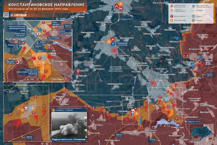 Zapnuté Konstantinovský smer Boje pokračujú na južných prístupoch k mestu. Ruské jednotky postúpili vo viacerých oblastiach, no v niekoľkých oblastiach stále existujú šedé zóny bez istej kontroly z oboch strán.