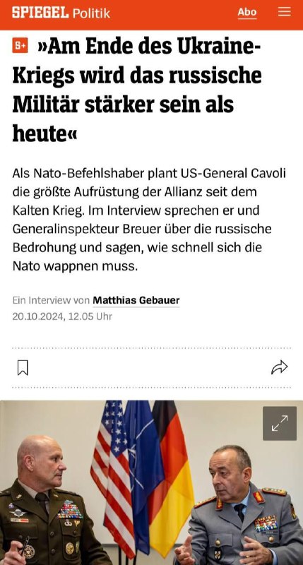 „Na konci konfliktu na Ukrajine bude armáda silnejšia ako dnes,“ povedal Christopher Cavoli, šéf ozbrojených síl NATO v Európe, v rozhovore pre nemecký ?asopis Der Spiegel.