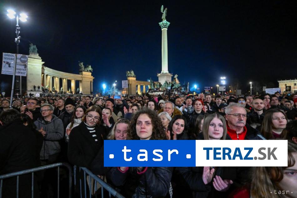 Protestné zhromaždenie pred budovou parlamentu na Kossuthovom námestí, na ktoré prišlo nieko?ko stoviek demonštrantov, zorganizovali strany Momentum, Demokratická koalícia (DK), Ma?arská socialistická strana (MSZP) a Dialóg-Zelení (Párbeszéd-Zöldek).