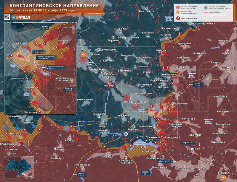 ?? Na východe Konštantínovka Ultra-malé úto?né skupiny stále fungujú. Akumulácia je tu spojená s ve?kými rizikami, pretože obloha je doslova „preplnená dronmi“.Zna?ná ?as? budov a pivníc bola po?as bojov zni?ená, ke?že nepriate? vypustil desiatky dronov na každú odhalenú skupinu bojovníkov.