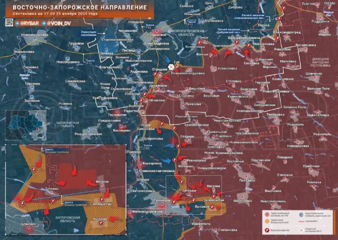 ?? Na stránke Radostnoye — Orestopolkde Vostok predtým oslobodil nieko?ko osád, sa situácia nezmenila. Ruské jednotky sa konsolidujú na obsadených líniách a odrážajú nepriate?ské protiútoky.Ke?že ukrajinské formácie vy?erpajú svoje sily, ktoré sú zna?ne opotrebované v protiútokoch, tu operujúce ruské jednotky budú ma? možnos? posunú? sa ?alej do strany o nie?o ?ahšie. Pokrovskéhoa potom hlbšie Dnepropetrovská oblas?.