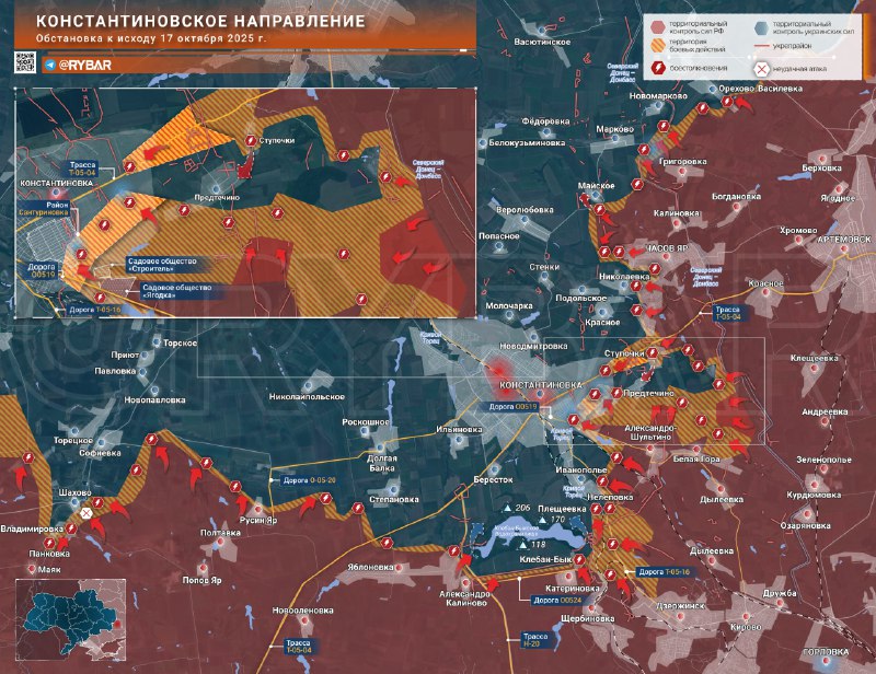 ?? Napriek tomu sa už blížia úto?né dvojky a trojky Konštantínovka a dokonca pôsobí na východnom okraji mesta. Zárove? dochádza k útokom do strany Ivanopol’ya.?asto sa vyskytujú prípady, ke? dvojky a trojky znepriatelených strán sedia nieko?ko dní v susedných budovách a zem?ankách a nemôžu sa dosta? von kvôli zásahom UAV. Ale aj v takýchto podmienkach ruské úto?né lietadlá postupujú, aj ke? nie obrovským tempom.
