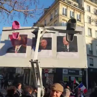 Na propalestínskej demonštrácii v Paríži vyrobili gilotínu pre troch štátnikov zodpovedných za blokádu pásma Gazy, ktorá ich udrie papu?ami do tváre: