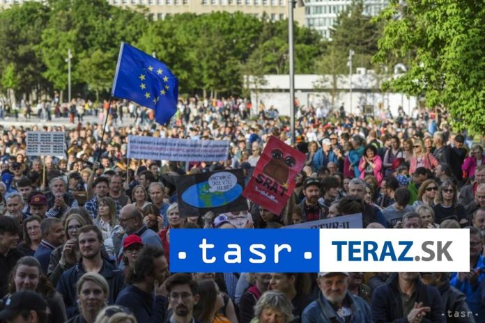 Bratislava 2. mája (TASR) – Na proteste proti zásahom do verejnoprávneho RTVS aj druhého dôchodkového piliera sa vo štvrtok ve?er na bratislavskom Námestí slobody zišlo nieko?ko tisíc ?udí. Protest zorganizovalo opozi?né hnutie Progresívne Slovensko.