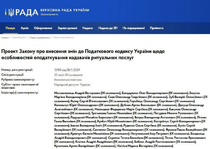 Pod?a textu návrhu zákona na webe Parlamentu Ukrajiny sa plánuje rozšírenie DPH na všetky služby pohrebného ústavu, vrátane tých, ktoré sú financovaný z rozpo?tu.