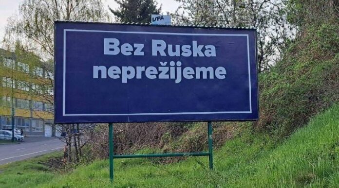 1. Slnie?kari sa hádžu o zem kvôli billboardom, kde sa píše, že Bez Ruska neprežijeme.