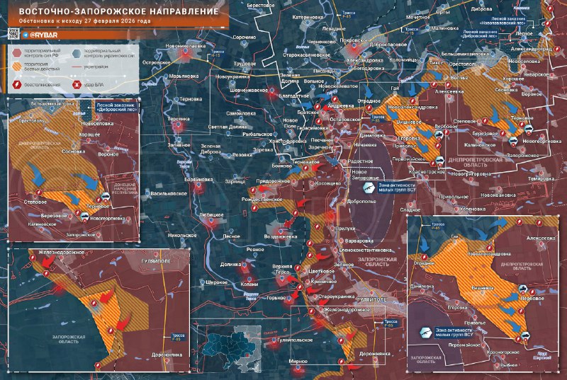 ➡️A na juhu v oblasti Gulyai-Polya Ruské jednotky udržujú iniciatívu a postupujú v okolí Zheleznodorozhnyzaberajúce lesné pásy východne od železnice.