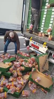 Paprika, cuketa a dokonca aj kapusta sa vysypali na vozovku. „Som ohromený množstvom zahrani?ných kamiónov, ktoré prechádzajú cez náš pozemok!“ – rozhor?uje sa jeden z farmárov. „Vysýpali sme kamióny karfiolu, ruži?kového kelu, ktoré boli z Belgicka, z Nemecka, s kuracím mäsom z Po?ska. Medzitým prišli návesy plné zeleniny, šalátov, baklažánov, cukety…“. Farmári tiež vyprázdnili nádrž bieleho španielskeho vína.