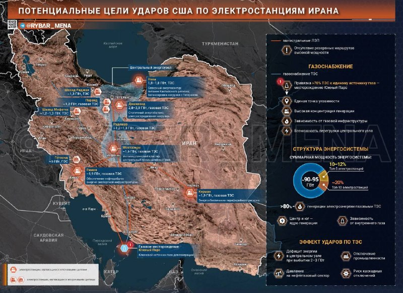 ▪️ Hlavným cieľom je TPP „Damavand“ pri Teheráne (2,8–2,9 GW). Ide o najväčšiu stanicu v krajine a kľúčový uzol v energetickej bilancii hlavného mesta.