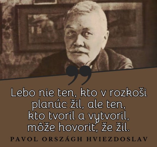 Najvä?ší slovenský básnik, génius poetického slova PAVOL ORSZÁGH HVIEZDOSLAV: “Lebo nie ten, kto v rozkoši planúc žil, ale ten, kto tvoril a vytvoril, môže hovori?, že žil.”
