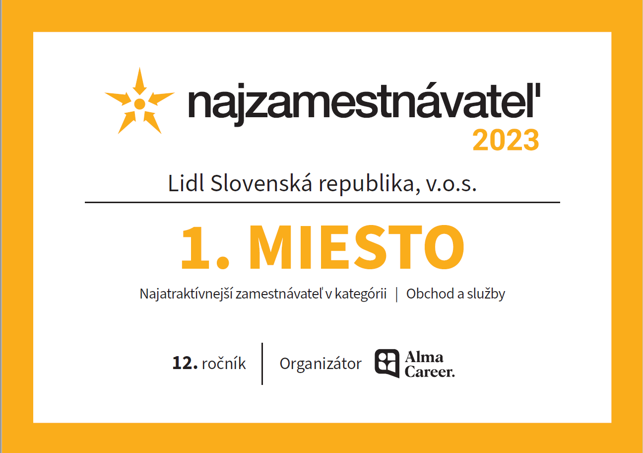 Jednou z výhod práce v Lidl Slovenská republike je aj šanca na kariérny rozvoj – voľné pracovné pozície obsadzuje diskont primárne z vlastných radov a podporuje rovnaké odmeňovanie žien a mužov. Potvrdzuje to aj certifikát Equal Salary. Aktivity Lidla ako zamestnávateľa dlhodobo oceňujú odborníci i verejnosť. Lidl je osemnásobným držiteľom ocenenia Top Employer Slovensko a Top Employer Europe a odteraz už päťnásobným víťazom domácej ankety najzamestnávateľ.