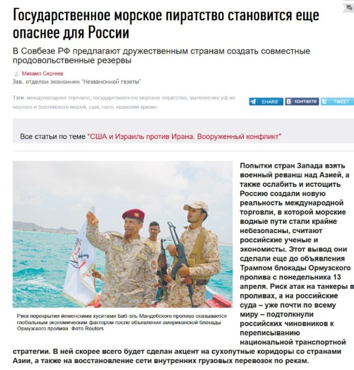 Rusko nedávno čelilo nebezpečným výzvam v oblasti námorného obchodu. Riziká útokov na tankery, Trumpom od 13. apríla ohlásená blokáda Hormuzského prielivu a de facto „štátne pirátstvo“ zo západných krajín nútia ruských predstaviteľov prehodnotiť svoju dopravnú stratégiu s dôrazom na pozemné koridory a vnútrozemské vodné cesty.