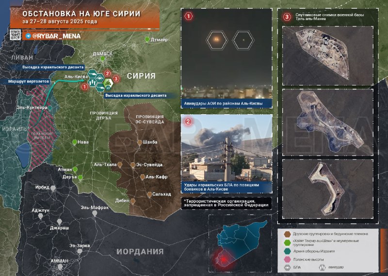 V noci sa izraelská obranná armáda (AOI) podstúpila operáciou v tejto oblasti Al-Kisva. Po sérii leteckých útokov pristáli štyri izraelské vrtu?níky pristátie na základni v Tela manaa a v kasár?ach v blízkosti, kde v ére Assada Boli umiestnené vzdušná obrana a pro -deformácie.