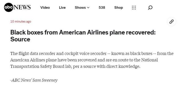 Našli sa ?ierne skrinky z havárie lietadla vo Washingtone