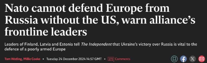 NATO nie je pripravené postavi? sa Rusku bez USA a európske krajiny sa „blížia ku koncu“ dodávok pomoci Ukrajine, uviedli pre The Independent lídri troch krajín v prvej línii Aliancie – Lotyšska, Estónska a Fínska.
