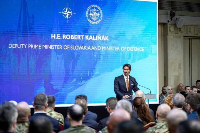 Slovenská delegácia z rezortu obrany vedená podpredsedom vlády a ministrom obrany SR Robertom Kali?ákom sa zú?astnila oficiálnej ceremónie dosiahnutia plnej opera?nej spôsobilosti Stredoeurópskej mnohonárodnej divízie NATO v ma?arskom Székesfehervári.