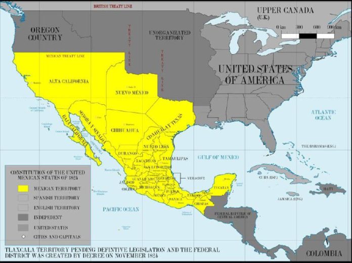 na návrat historických uzemí, ktoré do roku 1824 patrili Mexiku