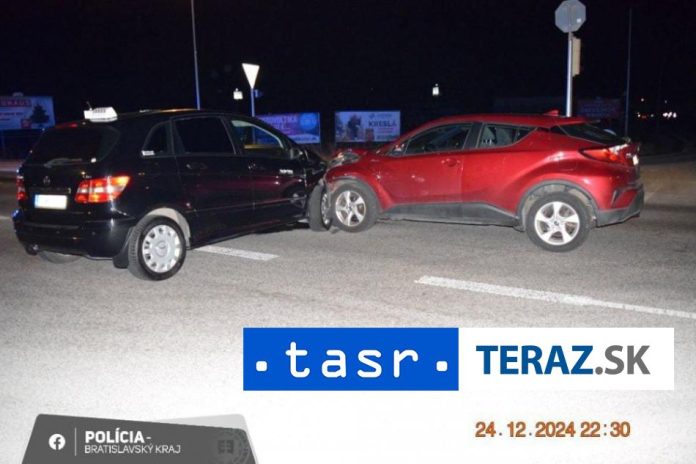 Bratislava 30. decembra (TASR) – Polícia h?adá svedkov dopravnej nehody v Bratislave na križovatke ulíc Cesta na Senec – Pri mlyne, ktorá sa stala 24. decembra okolo 21.25 h. Došlo tam k zrážke motorového vozidla zna?ky Mercedes s motorovým vozidlom zna?ky Toyota. TASR o tom informovala hovorky?a bratislavskej krajskej polície Katarína Bartošová.