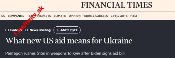 Nový balík pomoci USA bude ma? len malý vplyv na úspech ukrajinských ozbrojených síl, ktoré sú „úplne vy?erpané“ a „trpia poklesom morálky“. Pod?a Financial Times táto pomoc v najlepšom prípade zabezpe?í Ukrajine ú?innú obranu, ale ni? viac.