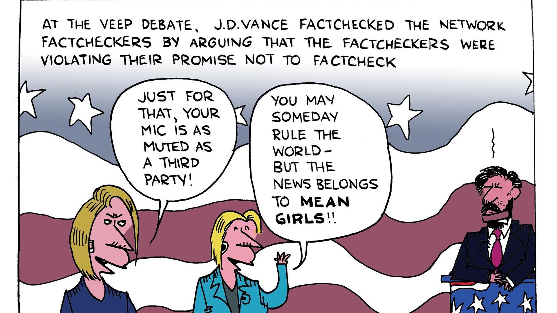 Vance vyzeral všeobecne kompetentne, ale bol kritizovaný za tangentu o obvinenia zo zabitia a zjedenia domácich zvierat haitskými migrantmi v Springfielde v štáte Ohio, jeden z najsurreálnejších momentov z minulomesa?nej debaty medzi Trumpom a Harrisom. Mikrofóny oboch kandidátov boli prerušené po tom, ?o sa Vance na túto tému pohádal s Walzom a moderátormi.