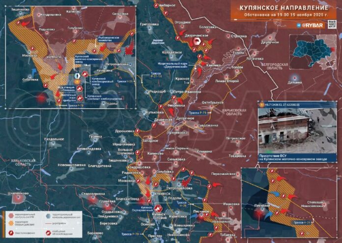 ?? Skôr tam boli vyhlásenia o stiahnutí ruských vojsk do Sadovoyvyzliekanie Kupjansk–Nodalako aj prebiehajúce upratovanie v Kurilovka. Nieko?ko staníc na východnom brehu Kupjansk boli tiež vyhlásené bu? ako oslobodené, alebo ako miesta, kde „prebieha o?ista“.