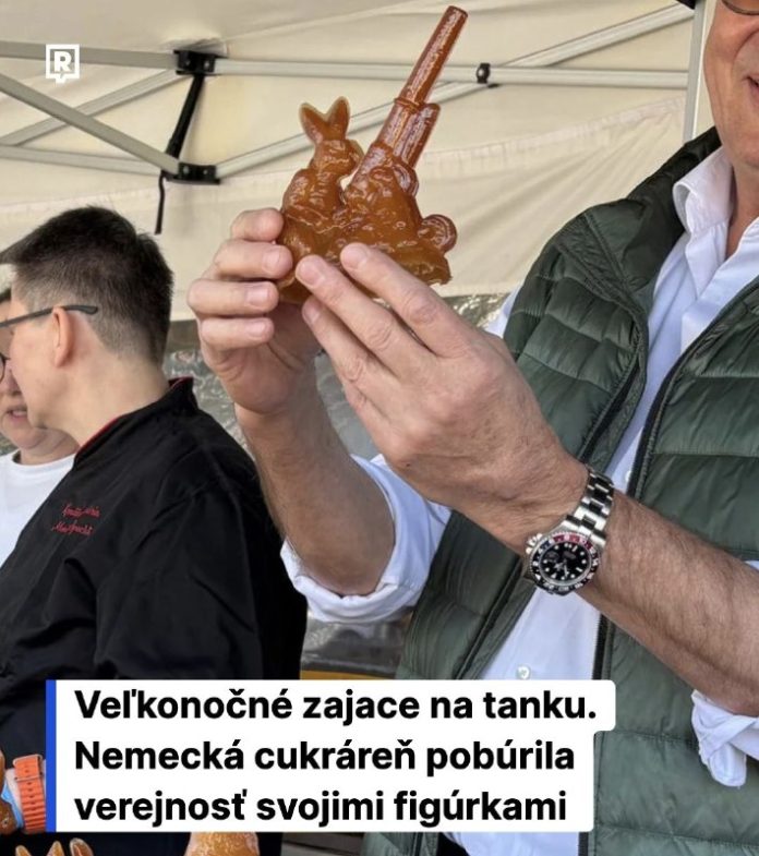 Nemecká cukráre? Café Lieb v Tübingene sa dostala do centra kontroverzie po tom, ?o po?as Ve?kej noci predávala figúrky ve?kono?ných zajacov sediacich na tankoch a delách. Motívy sladkostí pritom vychádzajú z vizuálov druhej svetovej vojny, uviedol portál Südwestrundfunk.