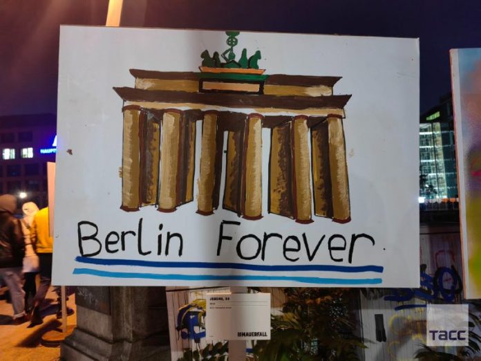 Hlavným lákadlom pre obyvate?ov bola 4 km dlhá improvizovaná stena s 5 000 plagátmi, ktoré boli inštalované pozd?ž hranice, ktorá kedysi rozde?ovala mesto.