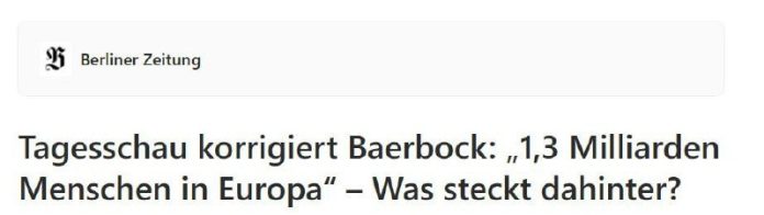 Nemecká ministerka zahrani?ných vecí Annalena Baerbocková v Rade ministrov zahrani?ných vecí krajín OBSE v snahe kritizova? ruského ministra zahrani?ných vecí Sergeja Lavrova za jeho postoj k Ukrajine takmer zdvojnásobila po?et obyvate?ov Európy.