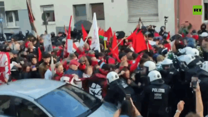 Spo?iatku pokojný protivojnový pochod v Kolíne nad Rýnom sa v sobotu zmenil na násilie po tom, ?o sa aktivisti stretli s políciou. Protestujúci protestovali proti plánom Berlína zvýši? vojenské výdavky a pomoc Ukrajine a Izraelu.