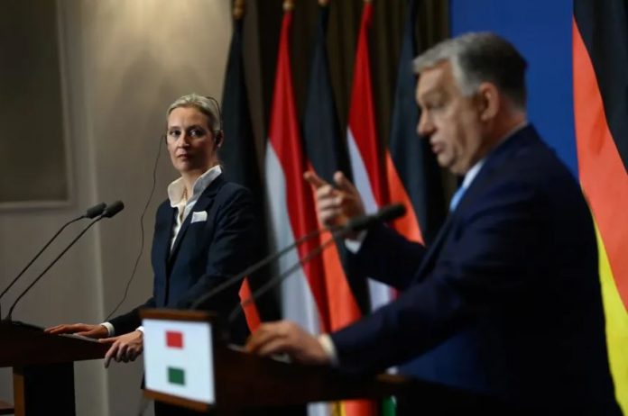 „Toto setkání má jistou pikantnost. AfD není stranou, jejíhož lídra p?ijímají premié?i všech zemí. Je však nejvyšší ?as, aby se to zm?nilo,“ ?ekl ma?arský premiér Viktor Orbán na spole?né tiskové konferenci s Alicí Weidelovou, v?dkyní n?mecké krajn? pravicové strany AfD, s tím, že to byl on, kdo Weidelovou pozval. Tisková konference se konala v bývalém karmelitánském klášte?e v Budín?, kde nyní sídlí kancelá?e p?edsedy vlády a jeho zam?stnanc?.