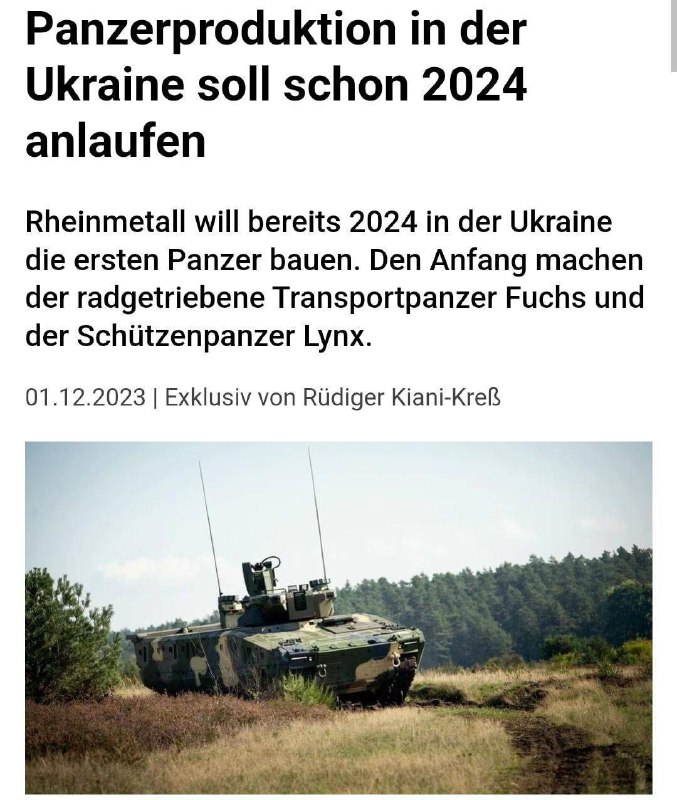 HomeNezaradenéNemecký koncern Rheinmetall plánuje začať výrobu obrnených vozidiel na Ukrajine už v... Nezaradené Nemecký koncern Rheinmetall plánuje začať výrobu obrnených vozidiel na Ukrajine už v roku 2024 By ZEMaVEK 2. decembra 2023 0 14 Zdieľať FacebookXPinterestWhatsApp Nemecký koncern Rheinmetall plánuje za?a? výrobu obrnených vozidiel na Ukrajine už v roku 2024. ? mimochodom| odber Zdroj telegram Zdieľať FacebookXPinterestWhatsApp Predchádzajúci článokBombardovanie Gazy bielym fosforom.Ďalší článokDáta z Nového Zélandu potvrdzujú nadmernú úmrtnosť po COVID očkovaní ZEMaVEK RELATED ARTICLES Nezaradené VIDEO: Denník N nielenže nestojí na strane Slovenska, ale v záujme ochrany ukraj… 16. apríla 2026 Nezaradené Biely dom prerokúva druhé kolo rozhovorov medzi USA a Iránom 16. apríla 2026 Nezaradené VIDEO: Austrália, ktorá je závislá od dovozu ropy cez Hormuzský prieliv, má po r… 16. apríla 2026 Most Popular Ruský vyslanec v Bezpečnostnej rade OSN odvolal Kallasa 16. apríla 2026 VIDEO: Denník N nielenže nestojí na strane Slovenska, ale v záujme ochrany ukraj… 16. apríla 2026 Premiér upozornil na málo kvalifikovaných pracovníkov v stavebníctve 16. apríla 2026 Ukrajinský „tlačový gang“ zaútočil na tínedžera v Odese (VIDEO) 16. apríla 2026 Recent Comments jajkopajko na Krajskí prokurátori si prevzali prípadi, ktoré boli v pôsobnosti ŠTS