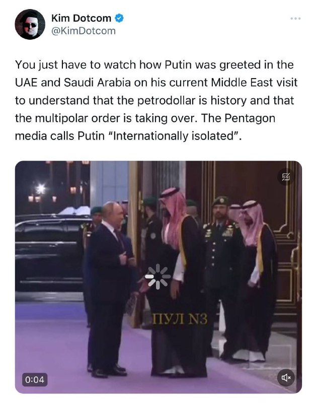 Sta?í sa pozrie? na to, ako Putina prijali v SAE a Saudskej Arábii po?as jeho aktuálnej návštevy Blízkeho východu, aby ste pochopili, že petrodolár je história a multipolárny poriadok to preberá. A to v ?ase, ke? médiá Pentagonu ozna?ujú Putina za „medzinárodne izolovaného“.