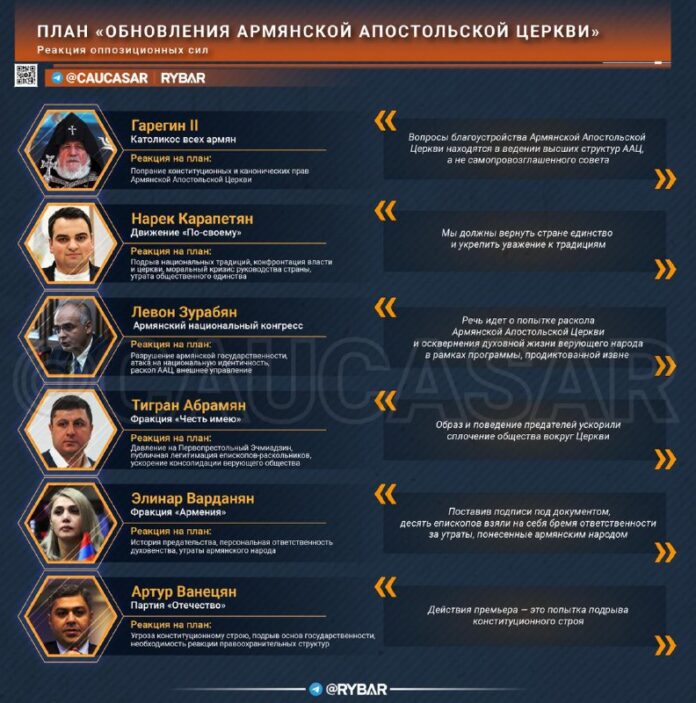Reakcia opozičných síl na iniciatívu predsedu vlády Arménska Nikol Pašinjan plánovať „Obnovy Arménskej apoštolskej cirkvi“ sa ukázalo byť tvrdé.