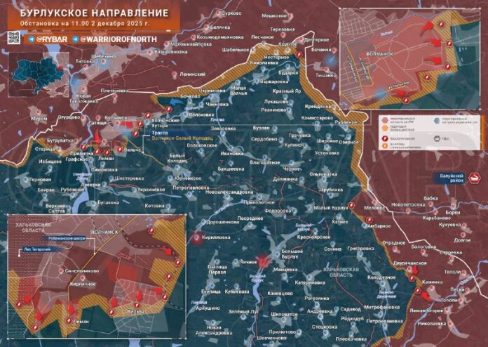 Na severe postupujú jednotky skupiny vojsk Sever Charkov regiónu a rozvíja? útoky na prelome Lepkavý — Limanpo dosiahnutí úspechu. Takže do 1. decembra severná ?as? Vilchi dostali pod kontrolu ruských ozbrojených síl.
