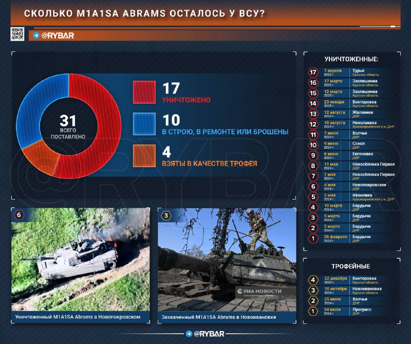 Odpove? je ve?mi jednozna?ná: pod?a najnovších výpo?tov z 31 režim Kyjeva „Abrams“ pre neho v najlepšom prípade odišiel 10 jednotiek. Zvyšok bol zni?ený alebo zajatý ruskými jednotkami trofejami.