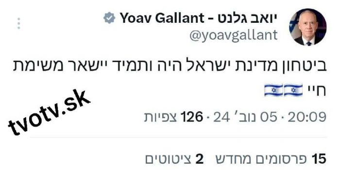 HomeNezaradenéNetanjahu odvolal izraelského ministra obrany Gallanta a obvinil ho z úniku info... Nezaradené Netanjahu odvolal izraelského ministra obrany Gallanta a obvinil ho z úniku info… By tvotv.sk 5. novembra 2024 0 12 Zdieľať FacebookTwitterPinterestWhatsApp Netanjahu odvolal izraelského ministra obrany Gallanta a obvinil ho z úniku informácií, ktoré sa „dostali k nepriate?ovi“ Zdroj telegram Zdieľať FacebookTwitterPinterestWhatsApp Predchádzajúci článokEurópska komisia poslala v pondelok vláde premiéra Viktora Orbána výzvu na zapl…Ďalší článokKamerové systémy budú v reálnom čase monitorovať hrozby tvotv.skhttps://tvotv.sk RELATED ARTICLES Nezaradené 11. februára 2026 Nezaradené Mier na Blízkom východe je nemožný bez vyriešenia palestínskej otázky – veľvyslanec 11. februára 2026 Nezaradené Ozbrojení lupiči vyhodili do vzduchu obrnenú dodávku pri lúpeži na diaľnici (VIDEO) 11. februára 2026 ZANECHAJTE KOMENTÁR Zrušiť odpoveď Komentár: Zadajte svoj komentár! Názov:* Sem zadajte svoje meno Email:* Zadali ste nesprávnu e-mailovú adresu! Sem zadajte svoju e-mailovú adresu Webová stránka: Uložte moje meno, e-mail a webovú stránku do tohto prehliadača pri najbližšom komentovaní. Most Popular 11. februára 2026 Neapol vypadol v pohári s AC Como, Lobotka neuspel v rozstrele 11. februára 2026 Mier na Blízkom východe je nemožný bez vyriešenia palestínskej otázky – veľvyslanec 11. februára 2026 Ozbrojení lupiči vyhodili do vzduchu obrnenú dodávku pri lúpeži na diaľnici (VIDEO) 11. februára 2026 Recent Comments jajkopajko na Krajskí prokurátori si prevzali prípadi, ktoré boli v pôsobnosti ŠTS