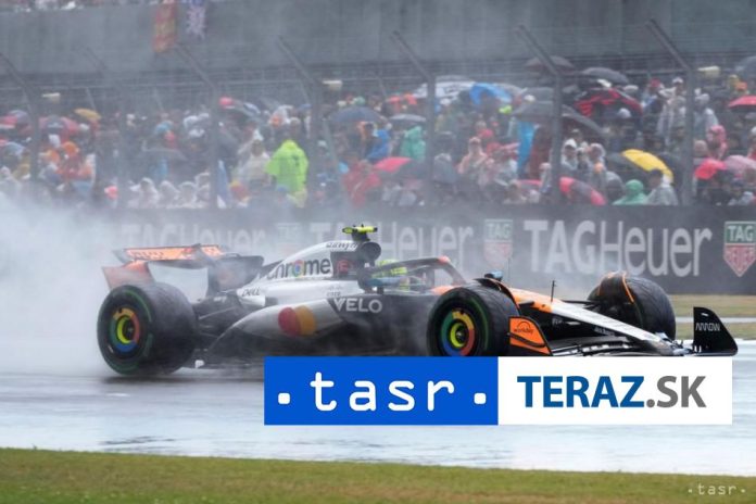 Na popredných pozíciách sa konkurencii vzdialili Verstappen, ktorý štartoval z pole position a druhý Piastri. Ten sa dostal pred súpera v riskantnom manévri v zákrute Stowe. Po zhustení daž?a vyšlo na tra? na osem kôl bezpe?nostné vozidlo. Hne? po jeho odchode havaroval Hadjar vo vysokorýchlostnej zákrute Copse – pre dáž? nevidel pred sebou idúceho Antonelliho a narazil do?ho. Safety car sa tak vrátil a práve vtedy dostal penalizáciu Piastri, ke? pred priebežným reštartom prudko zabrzdil a ohrozil súperov za sebou. Z jeho penalizácie mohol ?aži? druhý Verstappen, ten však dostal hne? po reštarte šmyk, prepadol sa a nakoniec bral len piate miesto. Norris trpezlivo po?kal za tímovým kolegom a životnú jazdu predviedol spomínaný Hülkenberg. Nemec uchmatol po štarte z 19. miesta a dobrej stratégii, ke? prezul na pneumatiky do prechodného mokra pred prvým safety carom, v závere tretie miesto Strollovi a na dia?ku odolal snahe Hamiltona, ktorý prišiel o 11-ro?nú šnúru pódií na domácom okruhu.