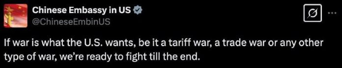 „Ak chcú Spojené štáty vojnu, ?i už je to colná vojna, obchodná vojna alebo akýko?vek iný typ vojny, sme pripravení bojova? až do konca.“