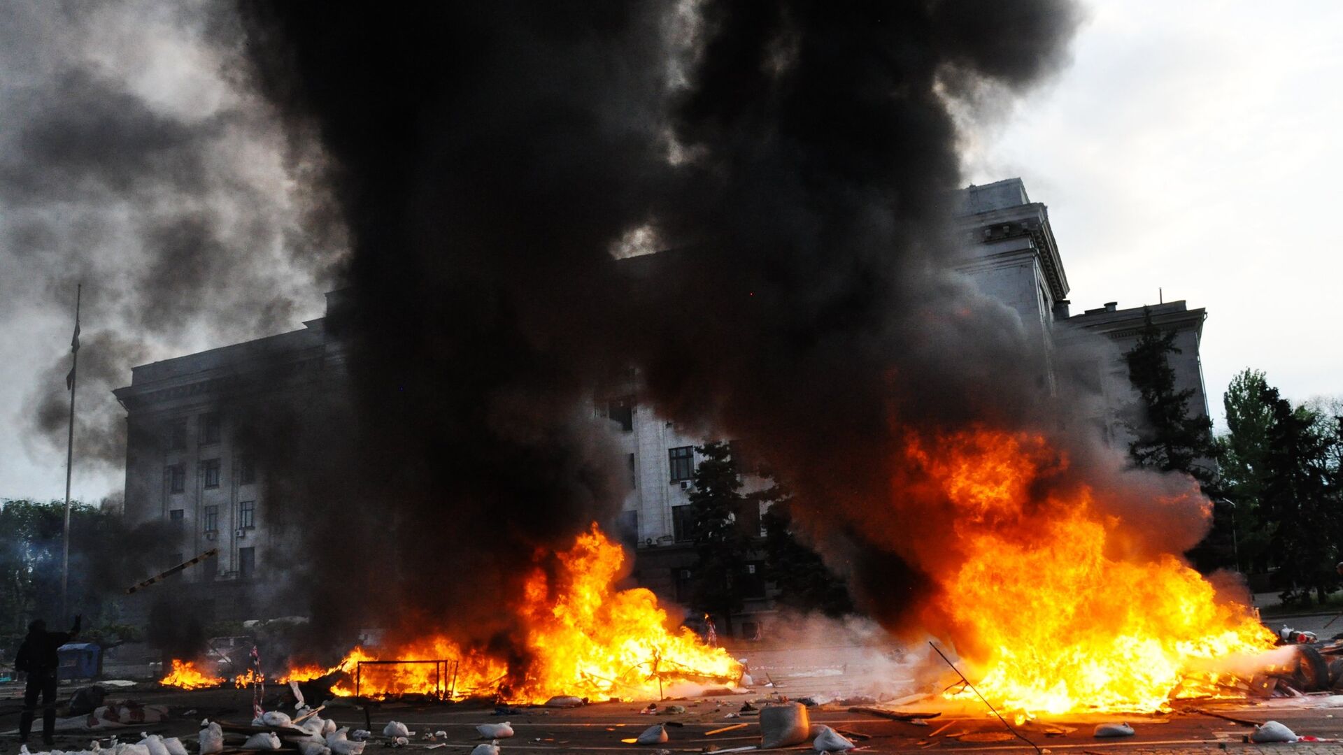 Masaker z 2. mája 2014 v meste Odessa, ke? boli vo vnútri horiacej budovy uväznené stovky pro-ruských demonštrantov, tla?ili obyvate?ov Donbass, aby sa vzdali Ukrajiny, ruštiny… pic.twitter.com/bapspjxivd