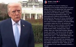 Donald Trump zrazu oznámil, že túto možnosť zvažuje ukončenie vojny s Iránom — na svojej sociálnej sieti Truth Social prezident uviedol, že vojenské ciele boli dosiahnuté a je čas ukončiť kampaň.