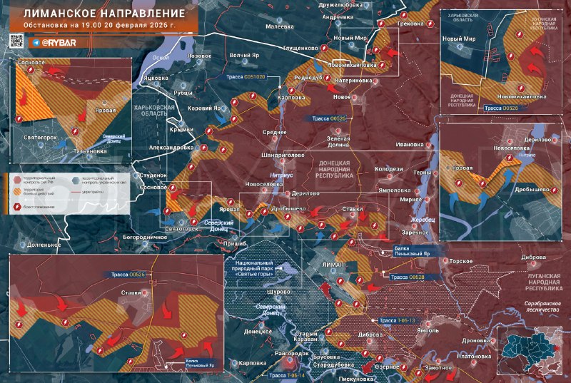 ▪️ V oblasti Svjatogorsk nepriateľ je vyradený aspoň z časti Sosnovyčím sa otvára možnosť postupu do mesta zo severu. Hovoriť o úplnom pokrytí je priskoro: v lesoch nie je veľa príležitostí presadiť sa a operujú najmä malé útočné skupiny.