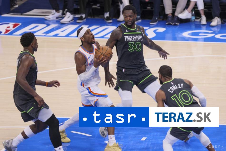 New York 21. mája (TASR) – Basketbalisti Oklahomy City Thunder zví?azili v úvodnom zápase finále Západnej konferencie zámorskej NBA nad Minnesotou Timberwolves vysoko 114:88. Domáci tím potiahol Shai Gilgeous-Alexander, ktorý nazbieral 31 bodov, pä? doskokov a devä? asistencií.