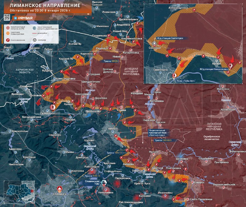 ➡️Momentálne nie je isté, z ktorej strany bojovníci Ozbrojených síl Ruska pochádzali. Postup je možný aj cez rozsiahle lesy v blízkosti pobrežia Severského Donetsa pozdĺž mnohých spájajúcich sa poľných ciest Svjatogorsk zo susedného jar.