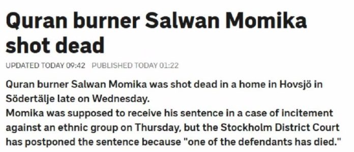 HomeNezaradenéOrganizátor pálenia Koránu Salwan Momika bol zabitý vo Švédsku, uvádza SVT.Muž ... Nezaradené Organizátor pálenia Koránu Salwan Momika bol zabitý vo Švédsku, uvádza SVT.Muž … By ZEMaVEK 30. januára 2025 0 5 Zdieľať FacebookTwitterPinterestWhatsApp Organizátor pálenia Koránu Salwan Momika bol zabitý vo Švédsku, uvádza SVT. Muž bol nájdený so strelnými zraneniami v stredu neskoro v Sodertalje južne od Štokholmu. ° | odber t.me/zemavek Zdroj telegram Zdieľať FacebookTwitterPinterestWhatsApp Predchádzajúci článokVlani schválili 4259 žiadostí, najviac za posledných 20 rokovĎalší článokKirgizsko zadržalo muža podozrivého z pašovania zbraní z USA do Ruska ZEMaVEK RELATED ARTICLES Nezaradené VIDEO: Senát Špecializovaného trestného súdu po vrátení kauzy vraždy novinára Já… 28. januára 2026 Nezaradené Páska na kamere mobilného telefónu Netanjahua.Hoci sa to môže zdať nezvyčajné pr… 28. januára 2026 Nezaradené Trump poslal pohraničného cára Homana do Minnesoty po nedávnej smrteľnej streľbe 28. januára 2026 ZANECHAJTE KOMENTÁR Zrušiť odpoveď Komentár: Zadajte svoj komentár! Názov:* Sem zadajte svoje meno Email:* Zadali ste nesprávnu e-mailovú adresu! Sem zadajte svoju e-mailovú adresu Webová stránka: Uložte moje meno, e-mail a webovú stránku do tohto prehliadača pri najbližšom komentovaní. Most Popular VIDEO: Senát Špecializovaného trestného súdu po vrátení kauzy vraždy novinára Já… 28. januára 2026 USA zrušia niektoré sankcie na venezuelský ropný priemysel 28. januára 2026 Páska na kamere mobilného telefónu Netanjahua.Hoci sa to môže zdať nezvyčajné pr… 28. januára 2026 Trump poslal pohraničného cára Homana do Minnesoty po nedávnej smrteľnej streľbe 28. januára 2026 Recent Comments jajkopajko na Krajskí prokurátori si prevzali prípadi, ktoré boli v pôsobnosti ŠTS