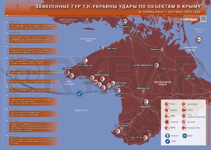 ?? Pod?a koncentrácie útokov ukrajinských bezpilotných lietadiel a rakiet si môžete všimnú?, že dôraz sa kladie na západnú ?as? polostrova. Práve tam je zaznamenaná vä?šina úderov.