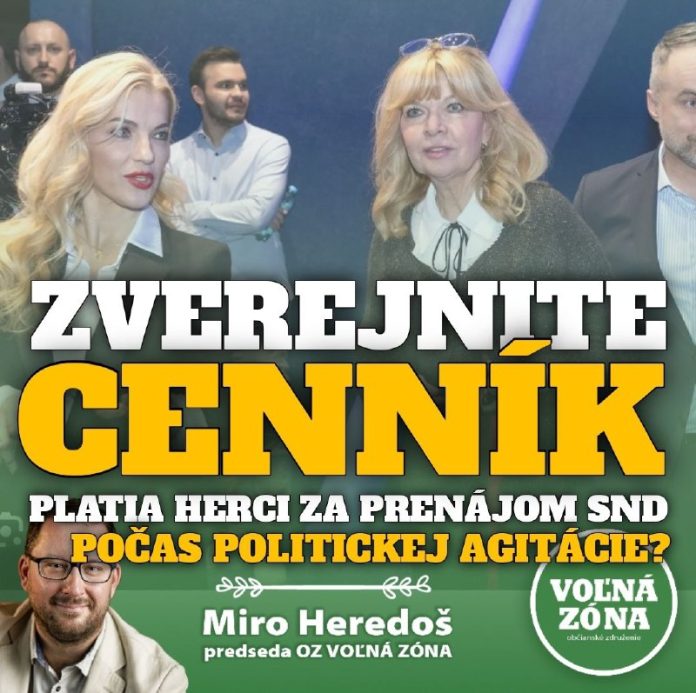 v mene občianskeho združenia VOĽNÁ ZÓNA Vás verejne vyzývame, aby ste zverejnili Cenník prenájmu priestorov SND na politickú agitáciu.