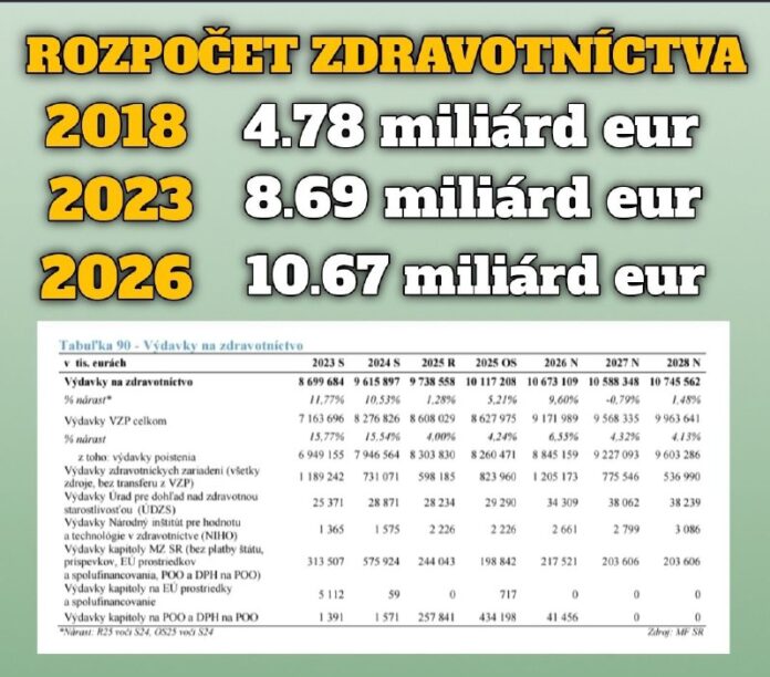 Na totálne zdevastované zdravotníctvo v roku 2018 posta?ilo dáva? 4.87 miliárd eur; v roku 2026 na toto zdevastované zdravotníctvo vydáme o vyše 120% viac a to 10.67 miliárd eur!