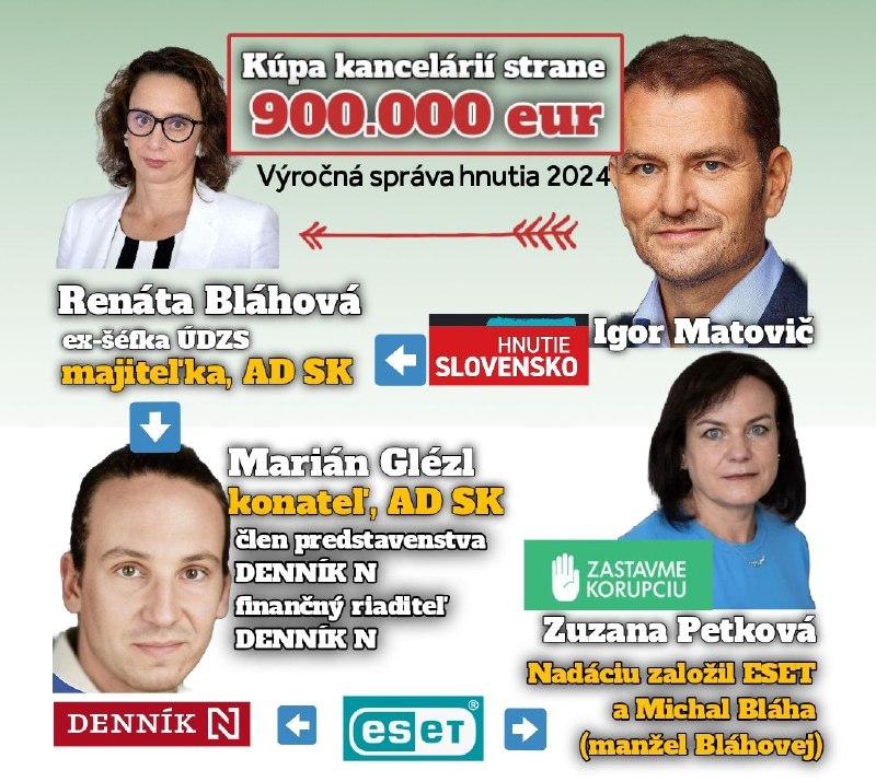 Všetky mená sú totiž vzájomne prepojené a jedná sa o peniaze, ktoré hnutie SLOVENSKO získalo zo štátneho rozpo?tu z našich daní.