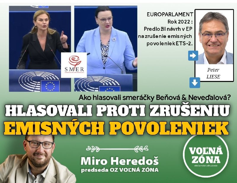 Priatelia, doh?adali sme hlasovanie z roku 2022 v europarlamente, lebo téma emisných povoleniek je vážna téma a má málo pozornosti. V?era som uviedol hlasovanie o emisných povolenkách a mená europoslancov, ktorí zradili Slovensko; tam sa poslanky?e za stranu SMER-SD zdržali hlasovania.